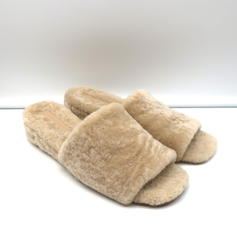 Veronica Beard Desiree Shearling Slides Sand Size 8.5 Wedge Sandals NEW