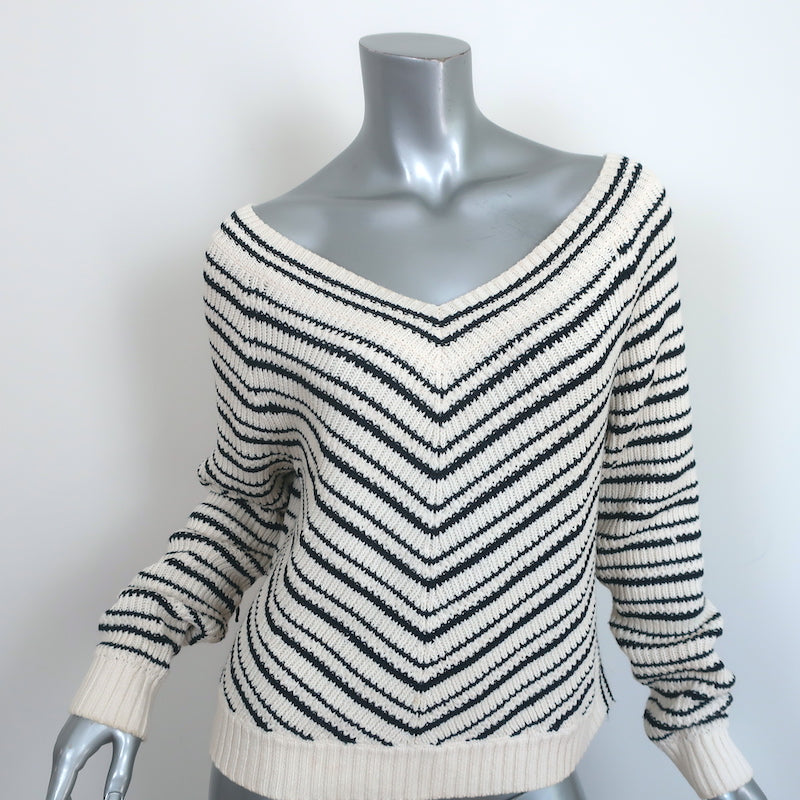 Pre-loved. Small brown smudge on front above hem and some faint smudging along sleeve hems. Retails for $495!
