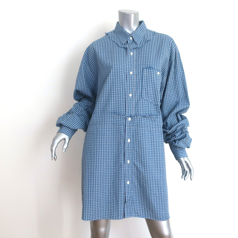 Vetements Deconstructed Double Shirt Dress Blue Checked Cotton Size Medium Measurements