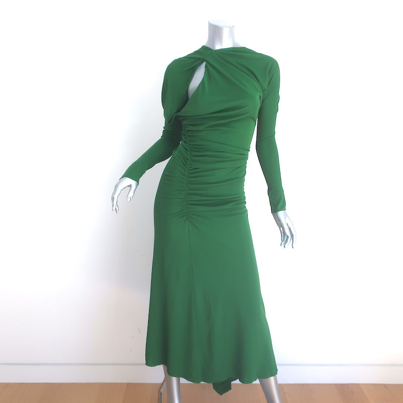 Victoria Beckham Slash-Neck Ruched Asymmetric Midi Dress Green Size US 2 Measurements