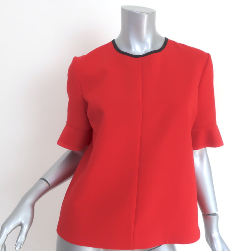 Victoria by Victoria Beckham Flounce Sleeve Top Red Stretch Wool Size US 6 Measurements