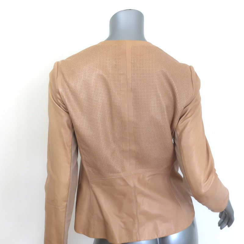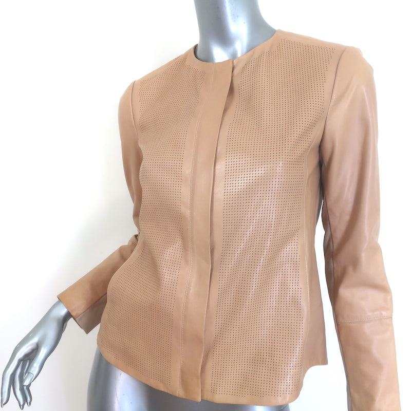 Vince Engineered Perforated Leather Jacket Beige Size Small