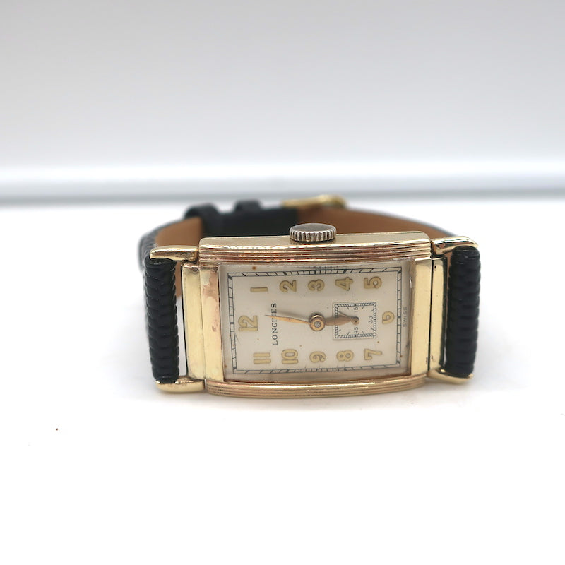 Vintage 1930s Longines 10k Gold-Filled Watch with Black Leather Band Unisex