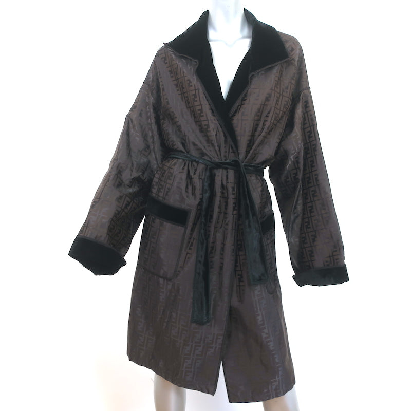 Vintage Fendi FF Jacquard Robe with Velvet Trim Dark Brown Size US 12