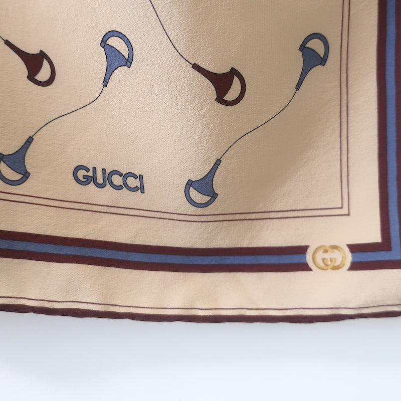 Vintage Gucci Horsebit Scarf Beige Silk Twill