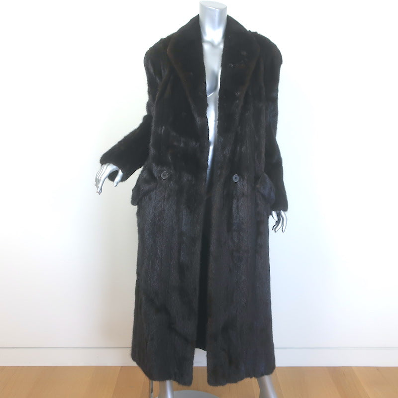Vintage Ralph Lauren Mink Fur Double Breasted Coat Dark Brown Size 8/10