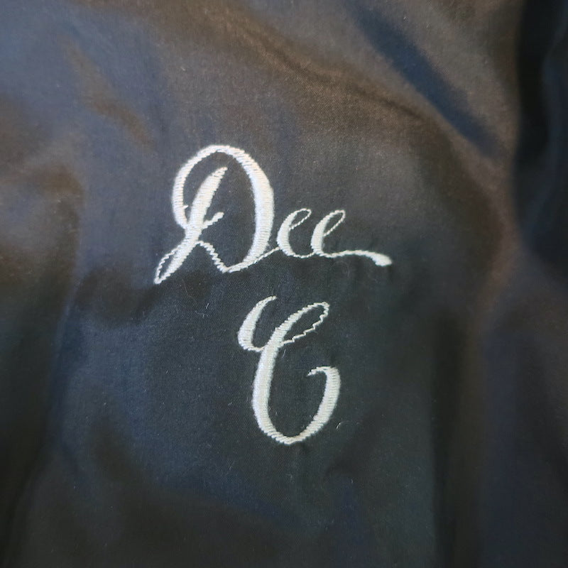 Gently worn. Excellent condition. No flaws. "Dee C" is embroidered on lining. Padding on shoulders where sleeves are attached.