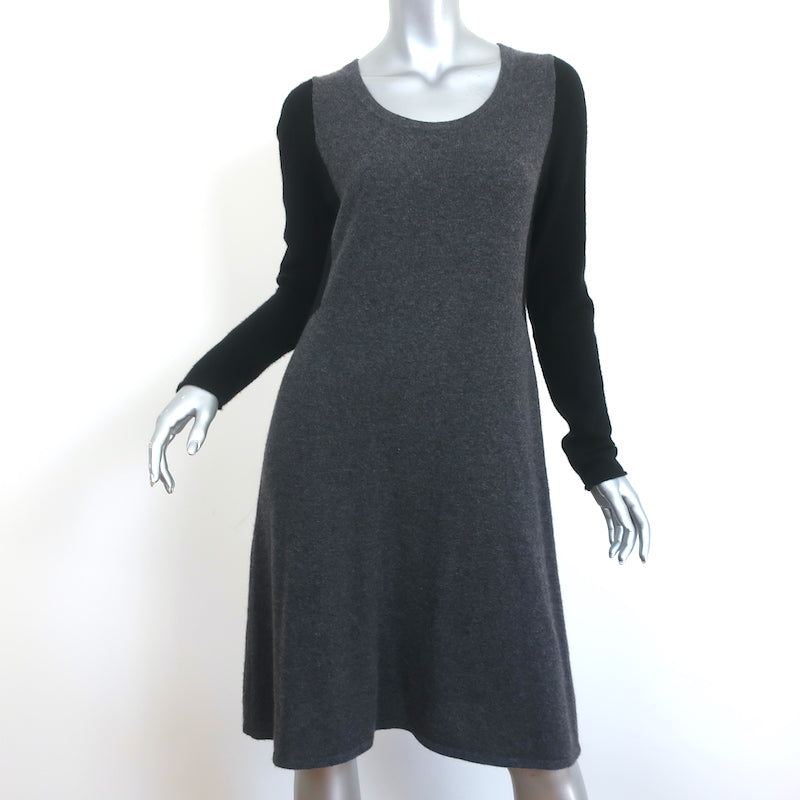 White + Warren Cashmere Colorblock Sweater Dress Black/Gray Size Medium