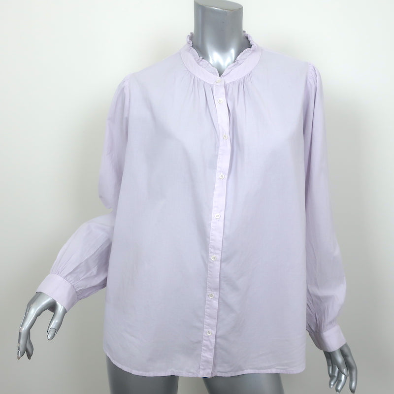 Xirena Ruffle Neck Button Down Shirt Light Purple Size Medium Long Sleeve Top Measurements