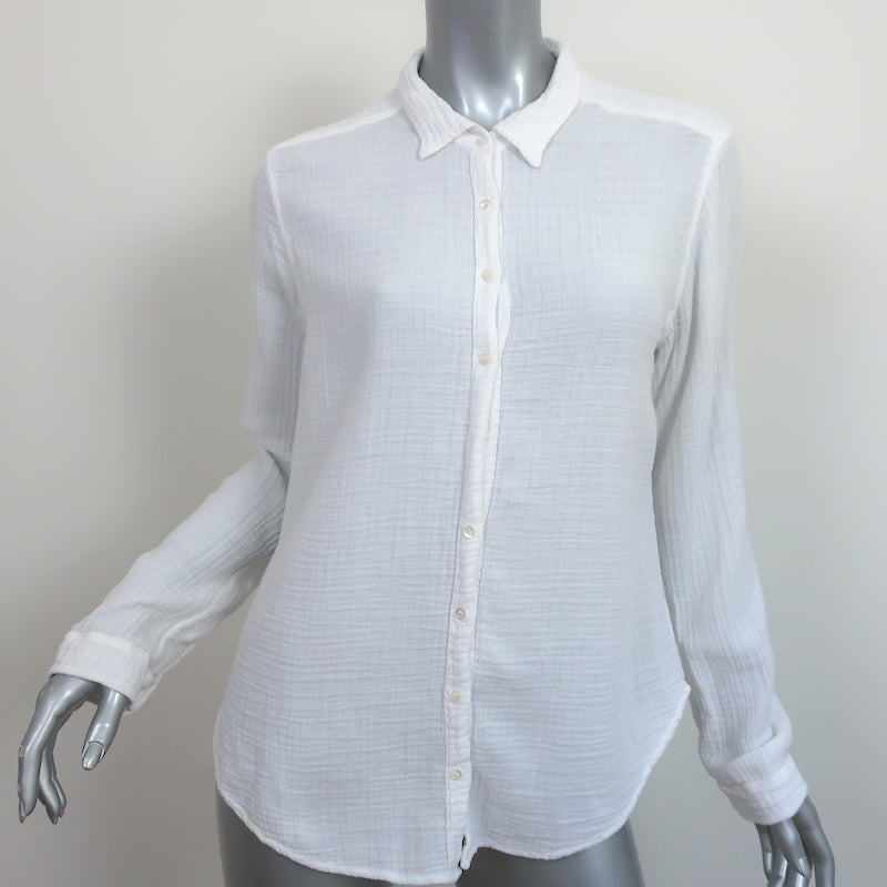 Gently worn. Good condition. One button has fallen off but top comes with an extra button. No other flaws. Retails for $198.