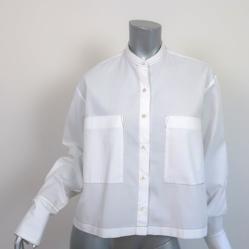 Yune Ho Button Down Shirt White Topstitched Cotton Size Small Long Sleeve Top