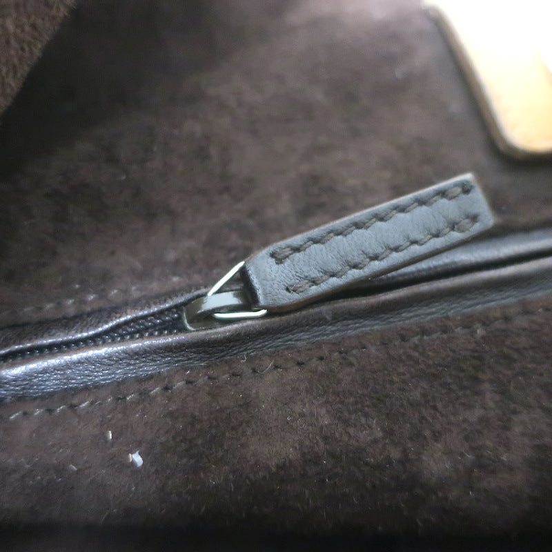 Pre-loved. Small gray scuffs throughout leather. Light wear on bottom corners and on side buckle loops. Missing shoulder strap. Light scratching on...