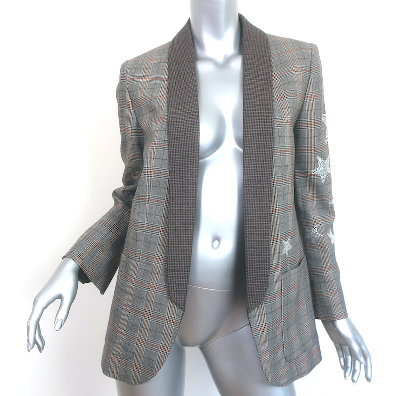Zadig & Voltaire Verdun Rhinestone Stars Blazer Brown Mixed Check Size 36 Measurements