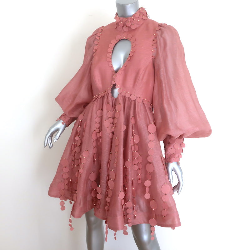 Zimmermann Concert Disc Keyhole Mini Dress Lipstick Pink Taffeta Size 3 NEW