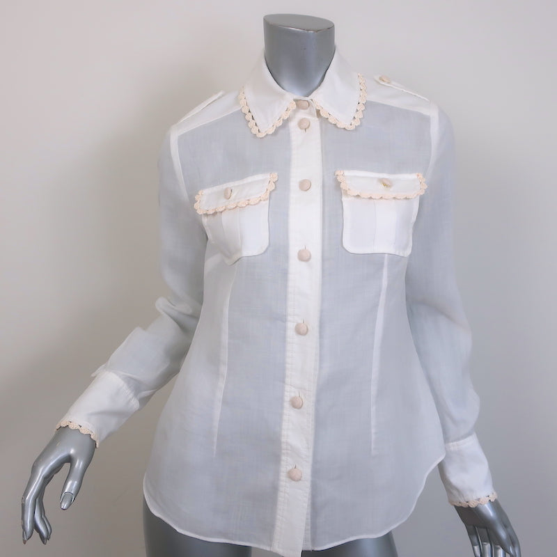 Zimmermann Crochet-Trimmed Button Down Shirt Cream Ramie Size 1 Long Sleeve Top