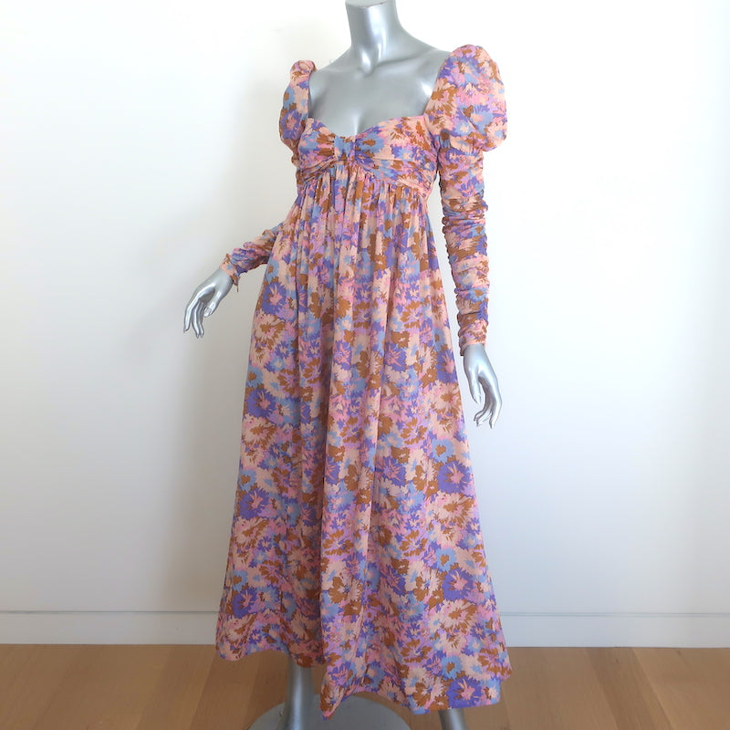 Zimmermann Violet Puff Sleeve Maxi Dress Multicolor Floral Print Cotton Size 0